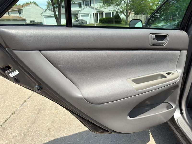 Mid-sized cars are the perfect size. Anti-lock brakes are standard on this Toyota Camry. The vehicle is accented with premium quality alloy wheels. Set the temperature exactly where you are most comfortable in this 2003 Toyota Camry . The fan speed and temperature will automatically adjust to maintain your preferred zone climate. This mid-size car features cruise control for long trips. The vehicle has a 4 Cyl, 2.4L high output engine. Front wheel drive on the Toyota Camry gives you better traction and better fuel economy. This unit is equipped with a gasoline engine. The vehicle emanates grace with its stylish gray exterior. With the adjustable lumbar support in this vehicle your back will love you.