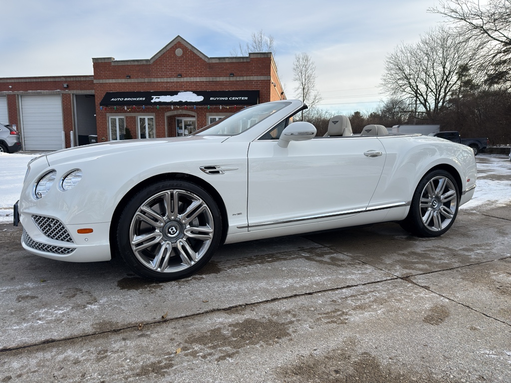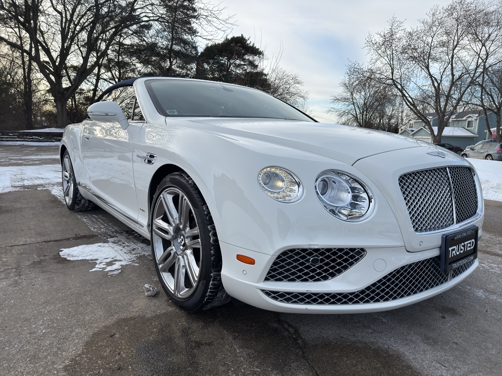 Conquer any rainy, snowy, or icy road conditions this winter with the all wheel drive system on this unit. Light weight alloy wheels on the Bentley Continental GTC are the perfect compliment to a stylish body. This 2017 Bentley Continental GTC offers Automatic Climate Control for personalized comfort. Maintaining a stable interior temperature in the vehicle is easy with the climate control system. It features cruise control for long trips. Electronic Stability Control is one of many advanced safety features on it. The vehicle has a W12, 6.0L high output engine. This small car can run on either gasoline or E85 fuel. This unit will allow to see the road and so much more with the HID headlights. Bluetooth technology is built into the Bentley Continental GTC, keeping your hands on the steering wheel and your focus on the road. The leather seats in the Bentley Continental GTC are a must for buyers looking for comfort, durability, and style. Help alleviate lower back pain with the driver seat lumbar support in this vehicle. You'll never again be lost in a crowded city or a country region with the navigation system on this 2017 Bentley Continental GTC . The state of the art park assist system will guide you easily into any spot. Start this model from inside with remote start. Small and nimble this unit scoots through traffic. It offers great fuel mileage and ease of parking. This vehicle embodies class and sophistication with its refined white exterior. Night driving with HID Xenon headlamps is a breeze in this model.