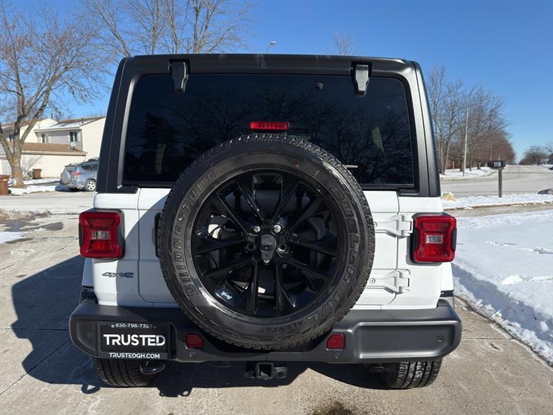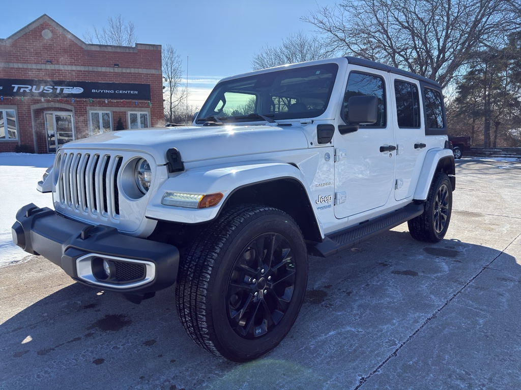 Enough room to carry all your cargo, passengers and equipment on a long road trip. Offering a ride height that is above most other vehicles, this Jeep Wrangler 4xe has great visibility on the road. When you encounter slick or muddy roads, you can engage the four wheel drive on this unit and drive with confidence. This vehicle has auto-adjust speed for safe following. This model offers Android Auto for seamless smartphone integration. Apple CarPlay: Seamless smartphone integration for this unit - stay connected and entertained on the go! This 1/2 ton suv keeps you comfortable with Auto Climate. Protect this model from unwanted accidents with a cutting edge backup camera system. Set the temperature exactly where you are most comfortable in it. The fan speed and temperature will automatically adjust to maintain your preferred zone climate. Easily set your speed in this model with a state of the art cruise control system. Increase or decrease velocity with the touch of a button. The Electronic Stability Control will keep you on your intended path. This Jeep Wrangler 4xe has a 4 Cyl, 2.0L high output engine. This 2021 Jeep Wrangler 4xe 's Forward Collision Warning feature alerts drivers to potential front-end collisions. Bluetooth technology is built into this vehicle, keeping your hands on the steering wheel and your focus on the road. Keep your hands warm all winter with a heated steering wheel in this model . The leather seats in this 1/2 ton suv are a must for buyers looking for comfort, durability, and style. The installed navigation system will keep you on the right path. An off-road package is equipped on it. Start this vehicle from inside with remote start. This unit embodies class and sophistication with its refined white exterior. It is equipped with the latest generation of XM/Sirius Radio.